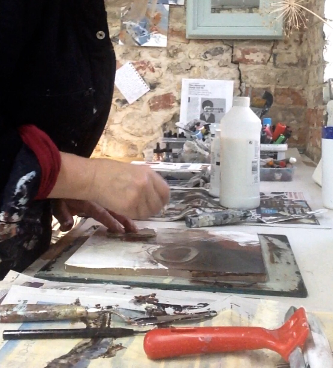 img_3898 Published 20/11/2017 at 1111 × 1225 in getting messy with monoprinting… Impressing textures © Mari French