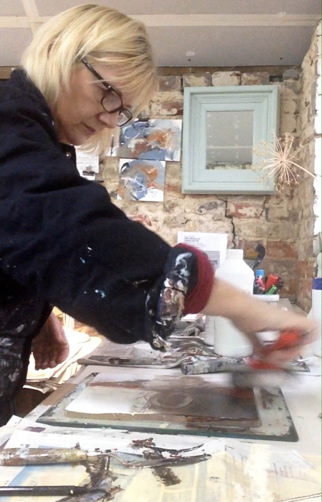 img_3907 Published 20/11/2017 at 1119 × 1744 in getting messy with monoprinting… Rolling the acrylic paint © Mari French