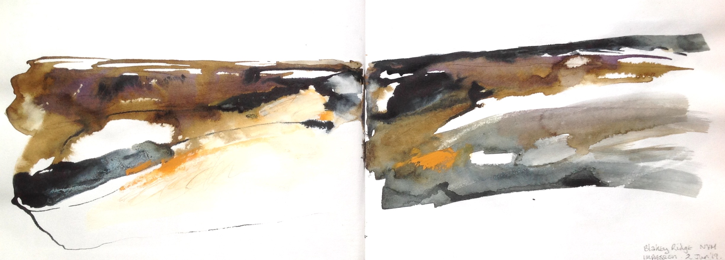 Farndale, NYM. 2019 Published 16/06/2019 at 2448 × 878 in Surfacing… Farndale, North York Moors, sketchbook, June 2019. © Mari French Farndale, North York Moors, sketchbook, June 2019. © Mari French