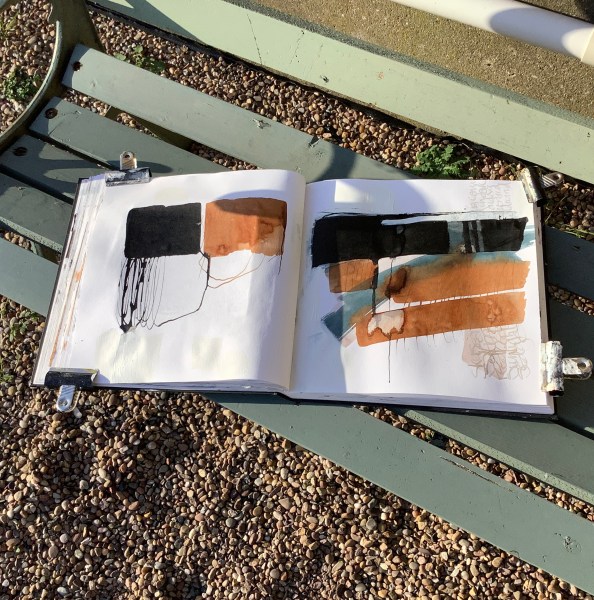 These are a few of my latest abstract ink works. The limited palette, the washes, bleeds and back runs really appeal to me. I’m trying to capture a sense of the mercurial light on these areas of water on the marshes; mirrors of the sky which fill and empty with the highest tides.