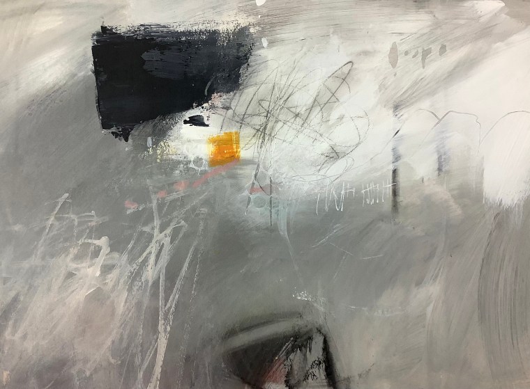 In developing this series of work my palette has become more subdued: warm umbers, soft blue-greys, indigo, a touch of pinkish siennas. I love the subtlety and it works well with the subject matter. I’m enjoying working on smooth cradled wood panels, altering them with brushed gesso before painting on them. The resulting texture and subsequent application and removal of paint is producing interesting atmospheric effects.