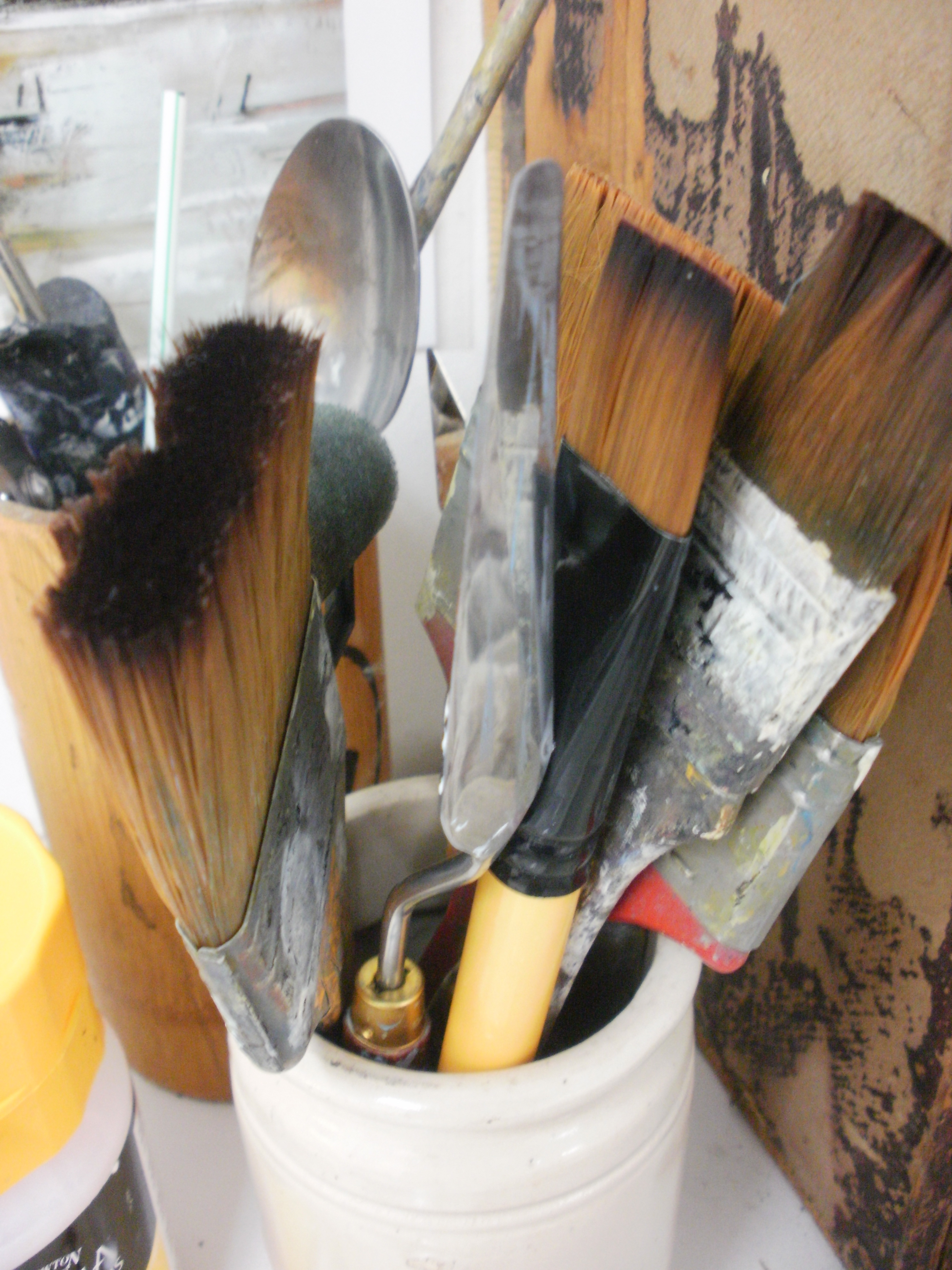 I also have a few works in progress on a theme I’m currently interested in, prompted by the Tinners’ Coast area of Penwith, Cornwall, which I explored, sketched and produced studies of on my residency at nearby Brisons Veor back in March this year. My earlier industrial landscape abstracts of the mine ruins along that coast have recently led to more intimate studies of the rusted and decaying interior of the huge engine sheds and the small derelict dynamite store at Priests Cove. I’ve always been attracted to texture and decay in buildings and this was a rich source I’ll be calling on for some time to come.