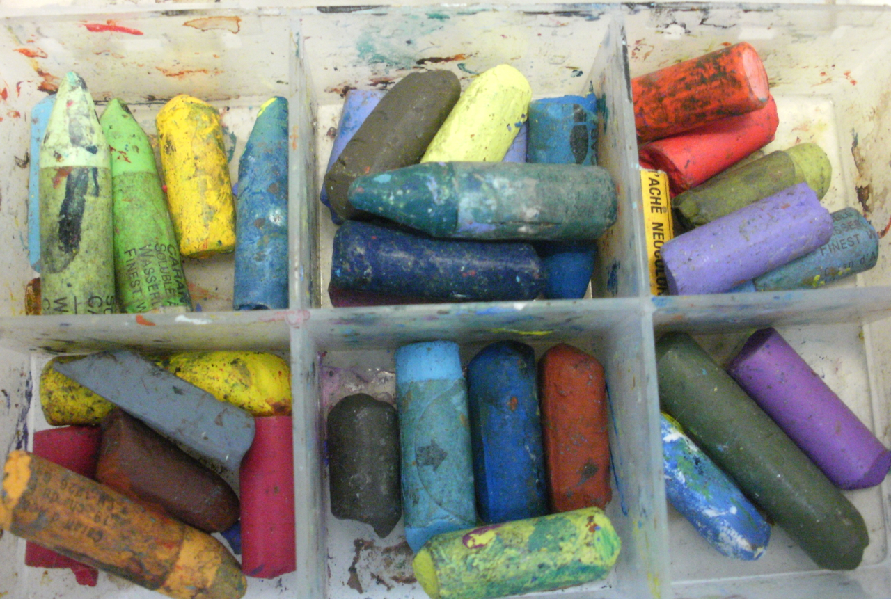 Why do I write / create what I do? That’s an easier question to answer – I can’t not! This compulsion to express on canvas or board the exhilaration I feel looking at the way light breaks through a cloud over a field, the colours of a wild crashing wave, the ancient patina of decayed buildings, is all-consuming. Much of the time it falls short of what I’m trying to say, but the absolute satisfaction of standing in front of a work that expresses what I felt, that succeeds for me… that’s why I paint. I’m drawn by the effects of light and weather on the landscape and the colours and textures produced. I’ve been fortunate for a few decades now to live in some of the most beautiful places in the UK. But I’m not inspired so much by fine weather and green fields. It’s the days when rain or hailstorms sweep like curtains over a bay, clouds chase their own shadows over a hill; days when the sea is smashing into rocks, or the autumn sun lights up the reed beds on a salt marsh… those days fill my head with images for future work. There is one other aspect and that is sheer pleasure in the medium, the way materials – ink, paint, oil pastel, acrylic – respond and interact with each other and the surface. How does my writing / creating process work? It starts with my sketchbooks I suppose. Sometimes with just my eyes, striving to capture and take in a scene I’ve found compelling, even if it’s just a fleeting moment. This can be a bit hair-raising if out driving as I try not to swivel my head too much till I can pull over. Artist friends of mine often joke that we should have car stickers saying ‘Warning, Artist driving!’. Sketching out in the field (which is where 99% of my sketching takes place) is necessary for the initial interpretation of what has caught my eye. I enjoy it immensely and it trains my observation skills.