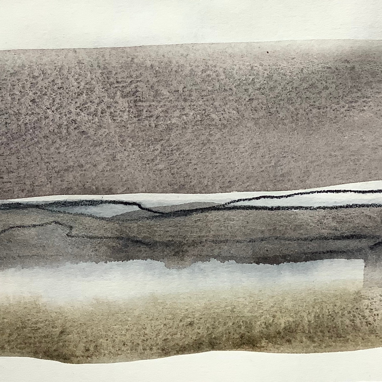 It has been productive spending time exploring the subject of tidal creeks and saltmarsh in my studio workbook, by creating collage papers with a gelli plate and assembling them; allowing experimentation with combinations of pattern, line and space and possible ways of referencing my experience of the subject. A few are included in this post.