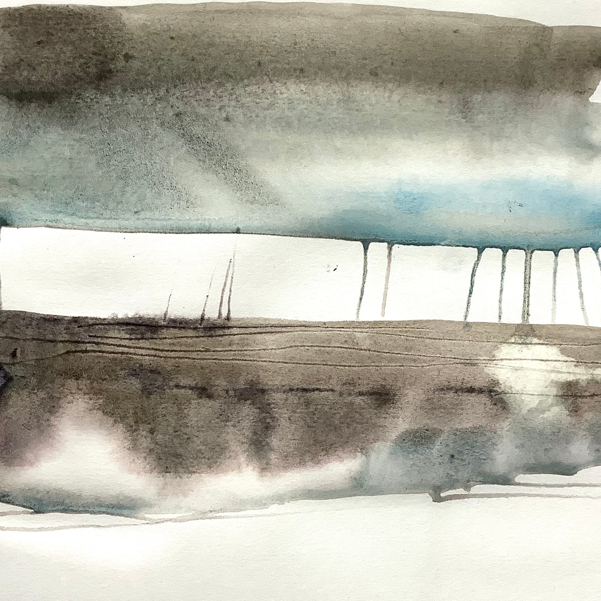 It’s been a year of ups and downs, stresses and a few successes, plus a lovely new studio which has been a lifeline for my work. So, apologies to my readers for such a gap in posts, but I’m back now and progressing a ‘new’ series of work (and a few exhibitions to work towards next year). I qualify ‘new’ because while this work is still related to my ongoing obsession with the saltmarsh coast, it feels different, deeper.