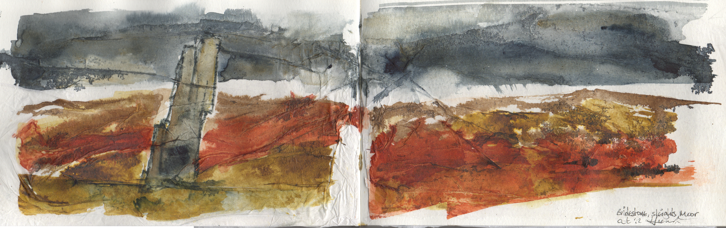Standing stone, Dog Howe, North York Moors. Sketchbook. © Mari French 2018