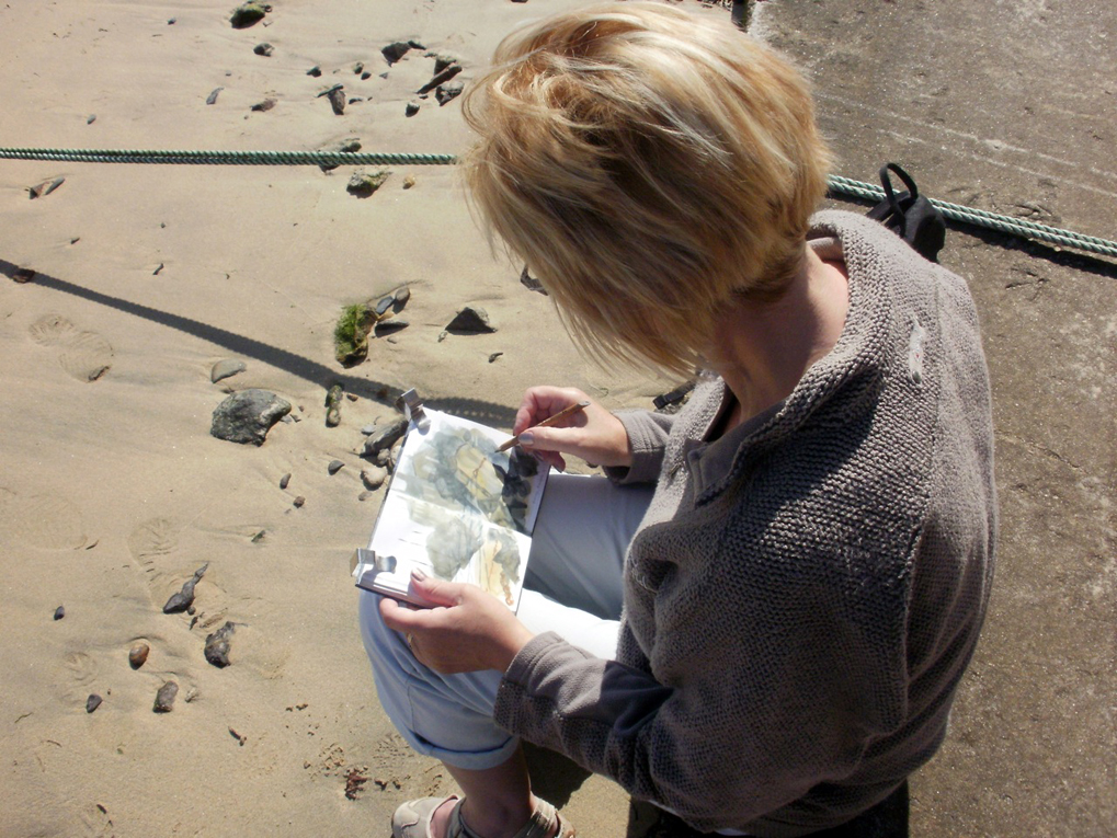 These sketches were made on the spot, (in varied weather) in my current favourite sketchbook – a Moleskine watercolour sketchbook. The paper weight is robust enough to stand up to the deluge of water I usually flood each page with and I prefer the landscape format over the A5/A6 sizes sketchpads and books tend to come in.